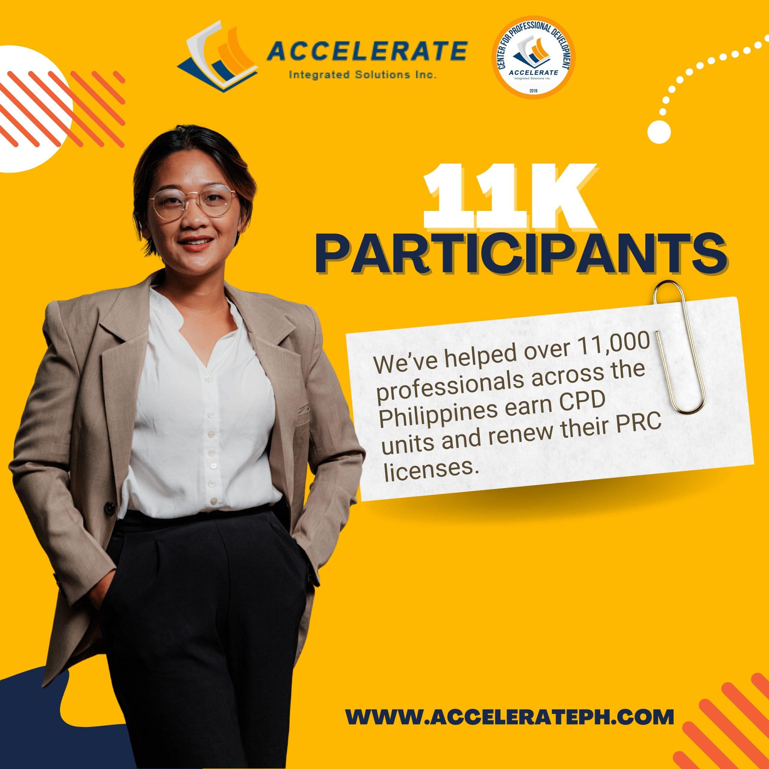 At Accelerate, we believe in the importance of professional development. That’s why we carefully formulate specific and useful competencies to help improve employee productivity and efficiency. In addition, we offer online and face to face courses to comply with the Continuing Professional Development (CPD) requirements of the Professional Regulation Commission (PRC) as mandated by the CPD Law. This way, our employees can continuously improve their skills and knowledge, ensuring that they are always up-to-date with the latest industry standards and practices.